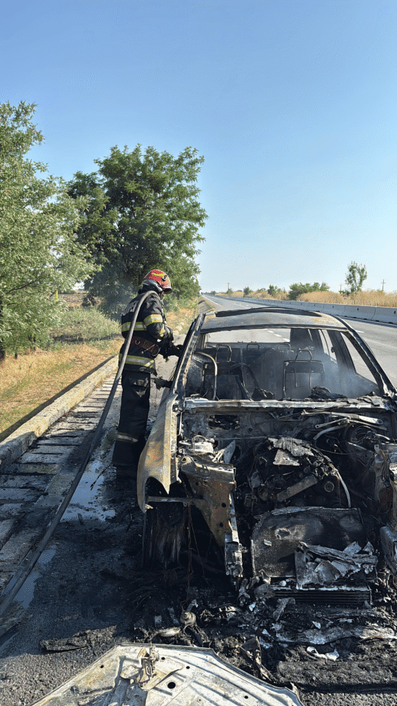 Șoferul a observat fum ieșind din zona motorului și a tras mașina pe dreapta, reușind să se îndepărteze la timp. La scurt timp, autoturismul a fost cuprins în totalitate de flăcări. Din fericire, nu s-au înregistrat victime.